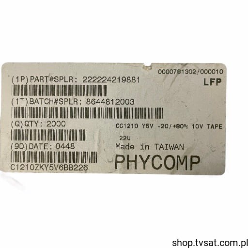 [100szt] CC1210ZKY5V6BB226 22uF 10V Y5V -20% 1210 SMD-1210 PHYCOMP