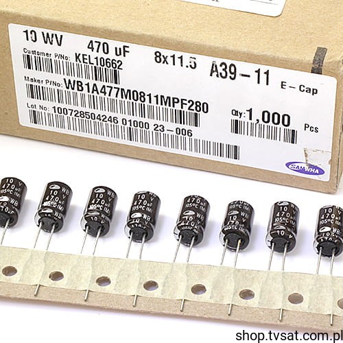 [100szt] WB1A477M0811MPF280 Elektrolytic 470uF 10V RADIAL SAMWHA
