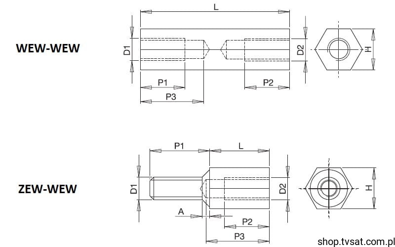 Opis: Tulejka sześciokąt L=20mm H=5.5mm 2x gwint M3 wewnętrzny *M3x5.5x20 Spacer Hexagon